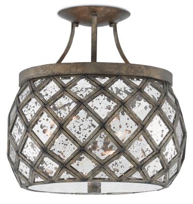 Buckminster Semi Flush in Pyrite Bronze/Raj Mirror by Currey & Company | 9999-0029 | Destination Lighting
