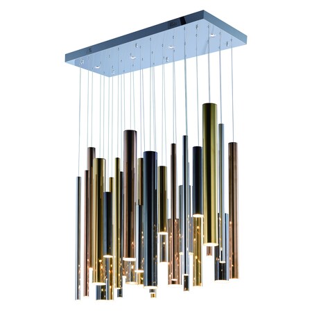 ET2 E10017-MPLT Flute Mini Multi-Colored Metal Tubes Large LED Linear Pendant Ceiling Lighting, 35-Light 119 Total Watts, 24" H x 12" W x 36" L, Chrome/Bronze/Brass