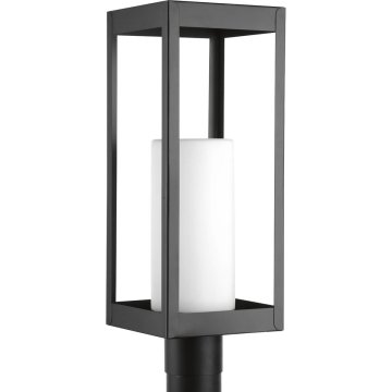 Progress Lighting Patewood Collection 1-Light Etched Opal Glass Farmhouse Outdoor Post Lantern Light Matte Black