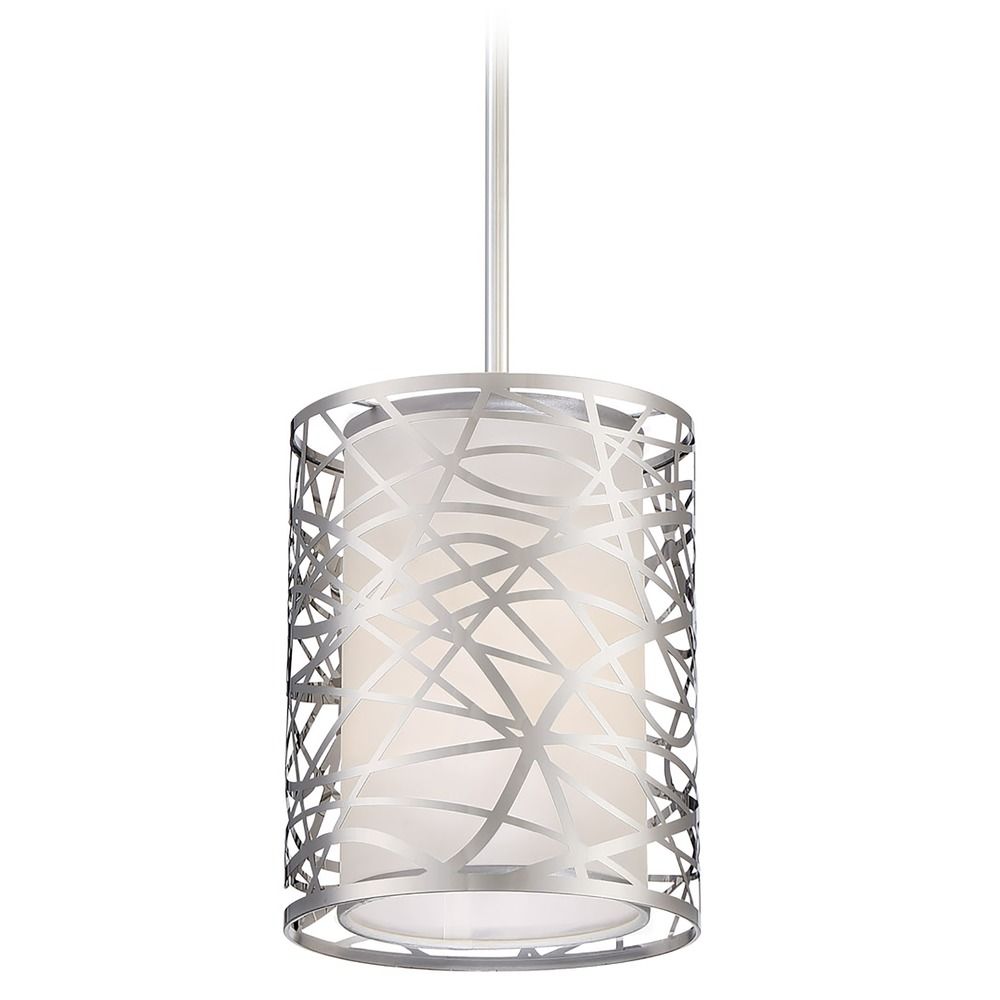 Quoizel Platinum Collection PCAE1508C Abode Clear Organza with Laser Cut Metal Cylinder Mini Pendant Ceiling Lighting, 1-Light 100 Watt, 10" H x 8" W, Polished Chrome