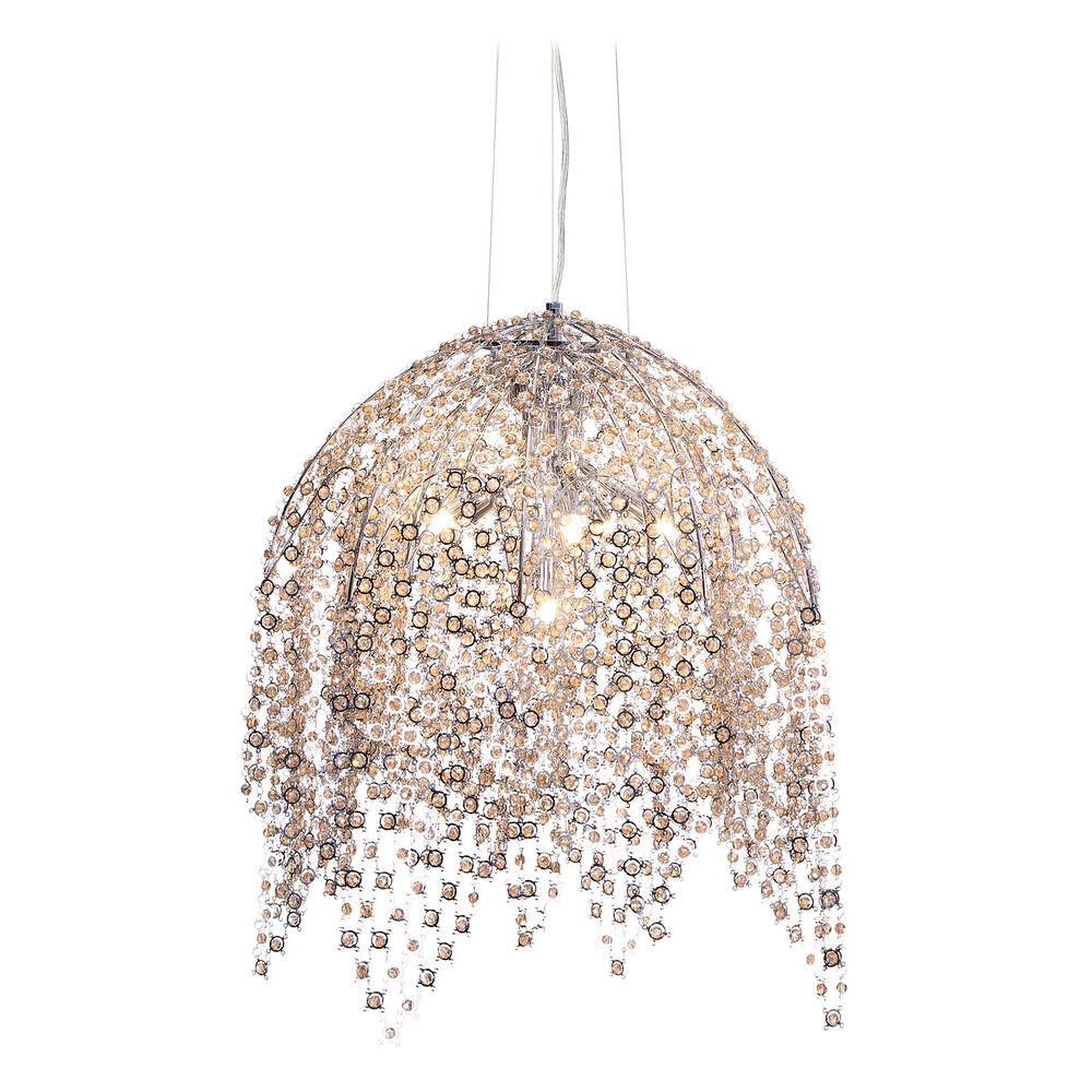 Eurofase 31617-017 20" Diameter Danza Cascading Chandelier with Metal, Handmade Cognac Crystal Chain and 6 G9 Light Bulbs, Medium, Chrome Finish