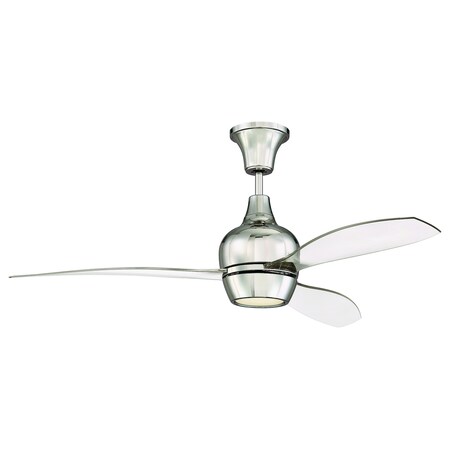 Craftmade BRD52PLN3 Bordeaux Downrod/Semi-Flush Mount Heavy-Duty 52" Ceiling Fan with LED Light & Wall Control, 3 Clear Acrylic Blades, Polished Nickel