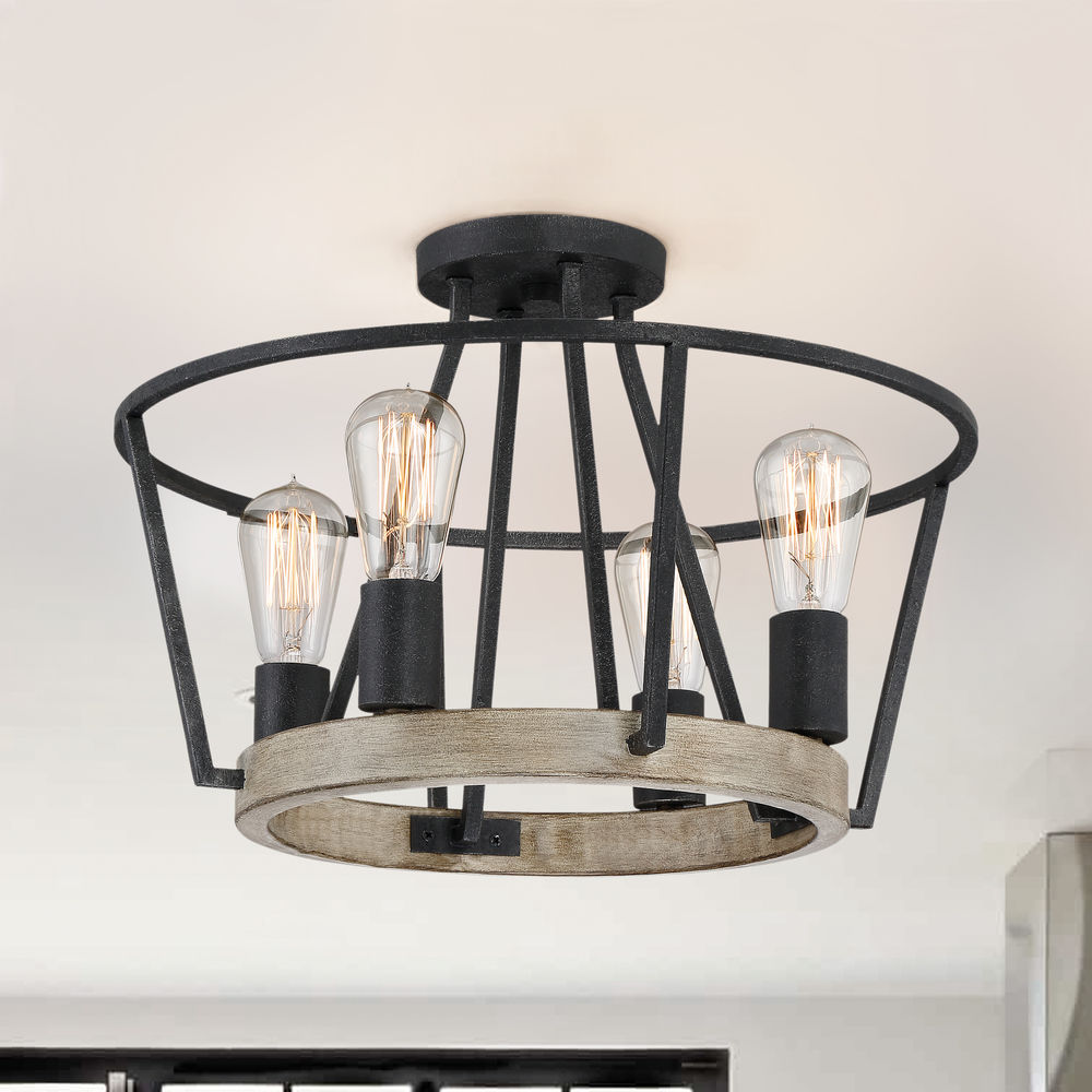 Quoizel BRT1717GK Brockton Farmhouse Convertible from Pendant to Semi-Flush Ceiling Lighting, 4-Light, 400 Watts, Grey Ash (12" H x 18" W)