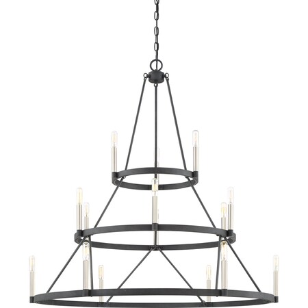Quoizel DOR5015MB Doran Three Rings Candle Chandelier, 15-Light 900 Total Watts, 41" H x 40" W, Mottled Black