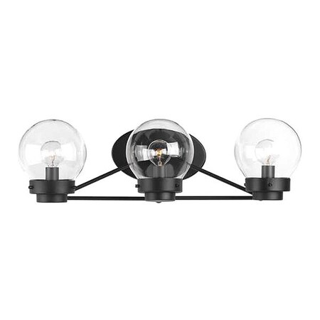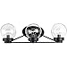 - A Matte Black finish is highlighted by clear globe shades