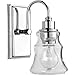 - bath bathroom interior inside indoor vanity powder room powderroom light lights lighting fixture fixtures antique bronze brown coastal farmhouse transitional medium base bulb CFL LED incandescent dimmable 1 one clear glass