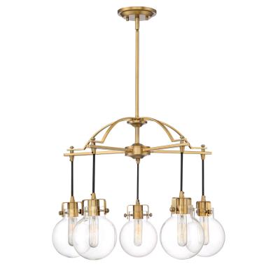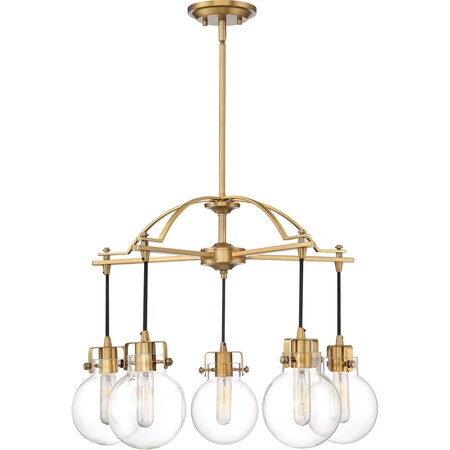 Quoizel SDL5005WS Sidwell Industrial Suspended Clear Glass Spheres Downlight Chandelier, 5-Light 500 Total Watts, 21" H x 26" W, Weathered Brass