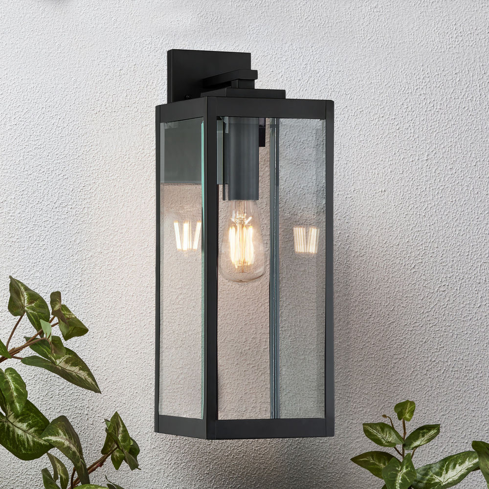 Quoizel WVR8407EK Westover Modern Industrial Clear Seedy Glass Large Outdoor Wall Lantern, 1-Light 150 Watt, 20" H x 7" W, Earth Black