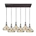 10432/6RC ELK Lighting Orbital 6-Light Rectangular Pendant Fixture in Oil Rubbed Bronze with Light Amber Glass
