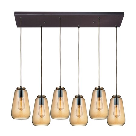 10433/6RC ELK Lighting Orbital 6-Light Rectangular Pendant Fixture In Oil Rubbed Bronze With Light Amber Glass