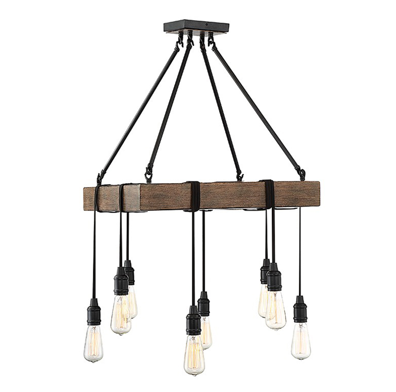- Simple, rustic style is yours with the unique Savoy House Burgess 8-light pendant. It features little more than bare bulbs suspended from cords wrapped around the square-shaped structure, finished in Durango, but this minimal look makes a big impact!