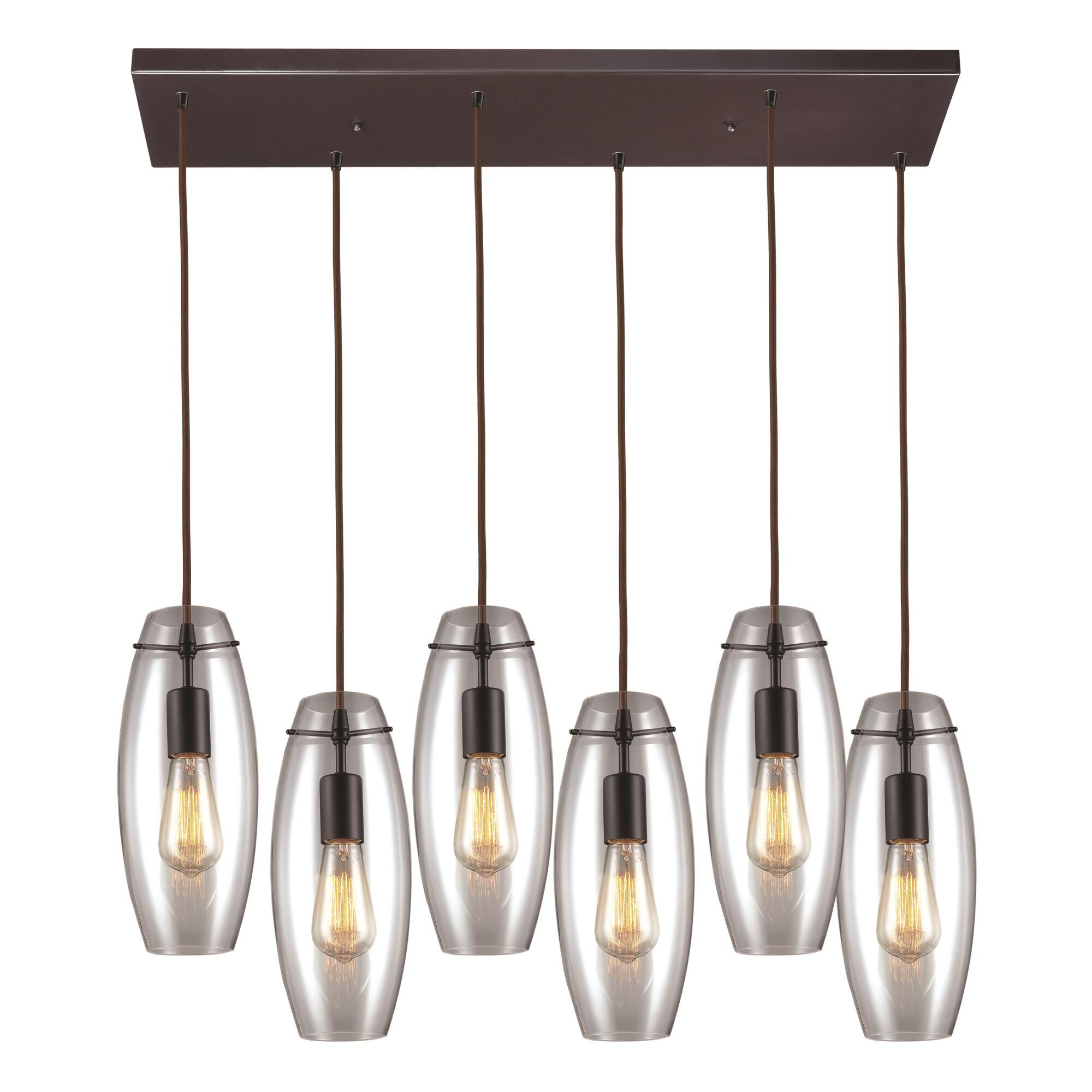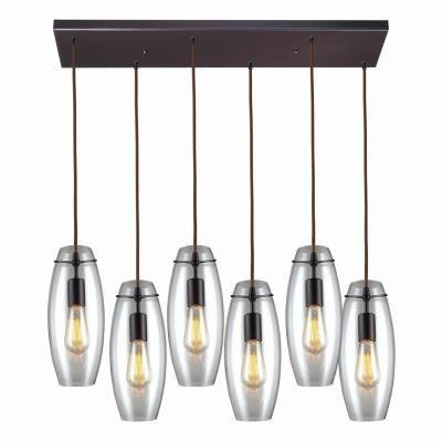 Elk Home Menlow Park Mini Pendant - 6-Light in Oiled Bronze Finish, with Smoke Glass, Transitional Style
