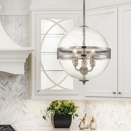 Give your home a bold, vintage-inspired lighting look with the Savoy House Stirling 3-light pendant. Its large, orb-shaped shade of crackled glass brings you high drama and is paired with a band of mesh detailing to add even more texture. Finished in sleek polished pewter. Pendants are very versatile and can be used in many different indoor spaces, including kitchens, foyers, offices, great rooms, bedrooms and even bathrooms. The hanging height is adjustable and it can be used on a sloped ceiling. Bulbs are not included, so try using stylized bulbs like Edison or tubular bulbs for a different look. The polished pewter finish can be matched with nickel hardware or mixed with hardware in other finishes. Choose Stirling to pep up the style of transitional, contemporary and classic style rooms. When you choose a Savoy House lighting fixture, you can be certain you've selected a piece that will withstand the test of time.