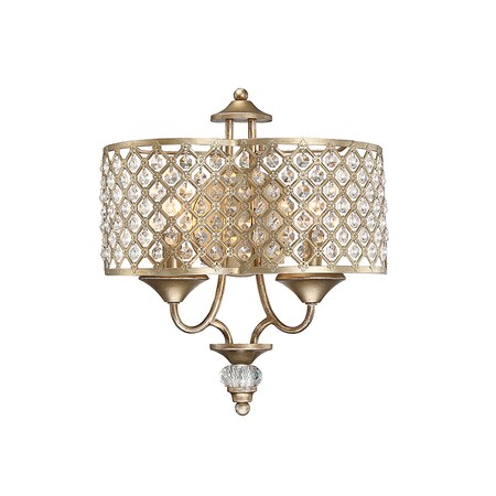 Glamour galore! The Regis has an upscale aesthetic, with luxury finishes and fine detailing, to illuminate and elevate any space in your home. The sconce measures 13" wide and 14.5" high - truly the perfect size to add elegant style to the walls of your dining area, living room, bedroom, hallway, great room, office, kitchen, bar, or family room. The Regis has a grand appearance courtesy of the gleaming, metallic, Pyrite finish, and the gorgeous latticework of multi-faceted clear crystals. Plus, there's a large faceted crystal decorating the finial. Two classic candelabra-like light arms are attached to the wall plate, and each holds one 60W, C-style bulb behind the crystal laden shade, for beautiful light. Overall, a sumptuous sconce for everyday luxury.<br/><br/>Features :<br/><br/>- Materials: Metal, glass<br/>- Finish: Gold<br/>- Room application: Bed room, dining room, living room, family room, great room, kitchen, foyer, entryway, stairway, hallway, office, billiard room, media room<br/>- Bulb base: E12<br/>- Recommended bulb shape: C11<br/>- LED compatible: Yes<br/>- Bulb included: No<br/>- Safety rating: UL, CUL<br/>- Bulb type: Incandescent<br/>- Crystal: Clear crystal<br/>- UL damp location<br/>- Dimmable: Yes<br/>- Bath sconce install direction: Reversible.<br/><br/>Specifications :<br/><br/>- Product Dimensions : 14.5"H x 13"W x 13"D<br/>- Product Weight : 2.02 lbs<br/>- Product Dimensions : (Extends) 5.5"<br/>- Product Dimensions : (Backplate) 5"H x 5"W<br/>- Number of Lights : 2<br/>- Wattage : 60W<br/>- Voltage : 120V.