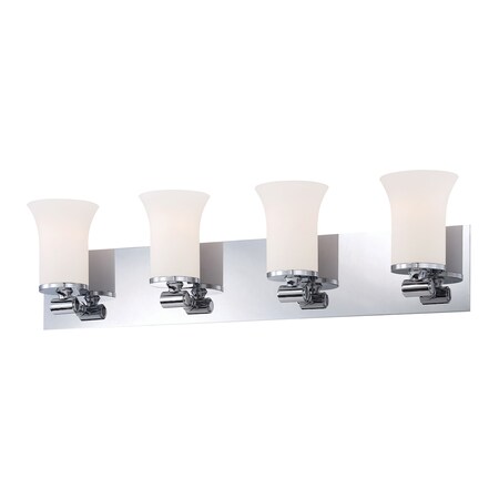 ELK Flare 4 Light Vanity in Chrome & White Opal Glass," 27.5"D x 4.88"L x 7.5"H