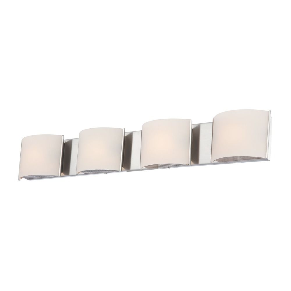 Softly contoured like a billowin sail, the shades of our Pandora Collection Vanities showcase hand molded Opal lass accentuated by perforated metal ratin. Choose a Satin Nickel, Oiled Bronze or Polished Chrome hardware option. Replaceable LED modules. Shade Included: Yes.