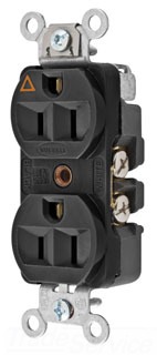 Hubbell CR5252IGBK Spike Shield HBL Construction Series Extra Heavy Duty Specification Grade Straight Blade Isolated Ground Duplex Receptacle, 125V, 15A, 0.5 HP, 2 Pole, 3 Wire, Black
