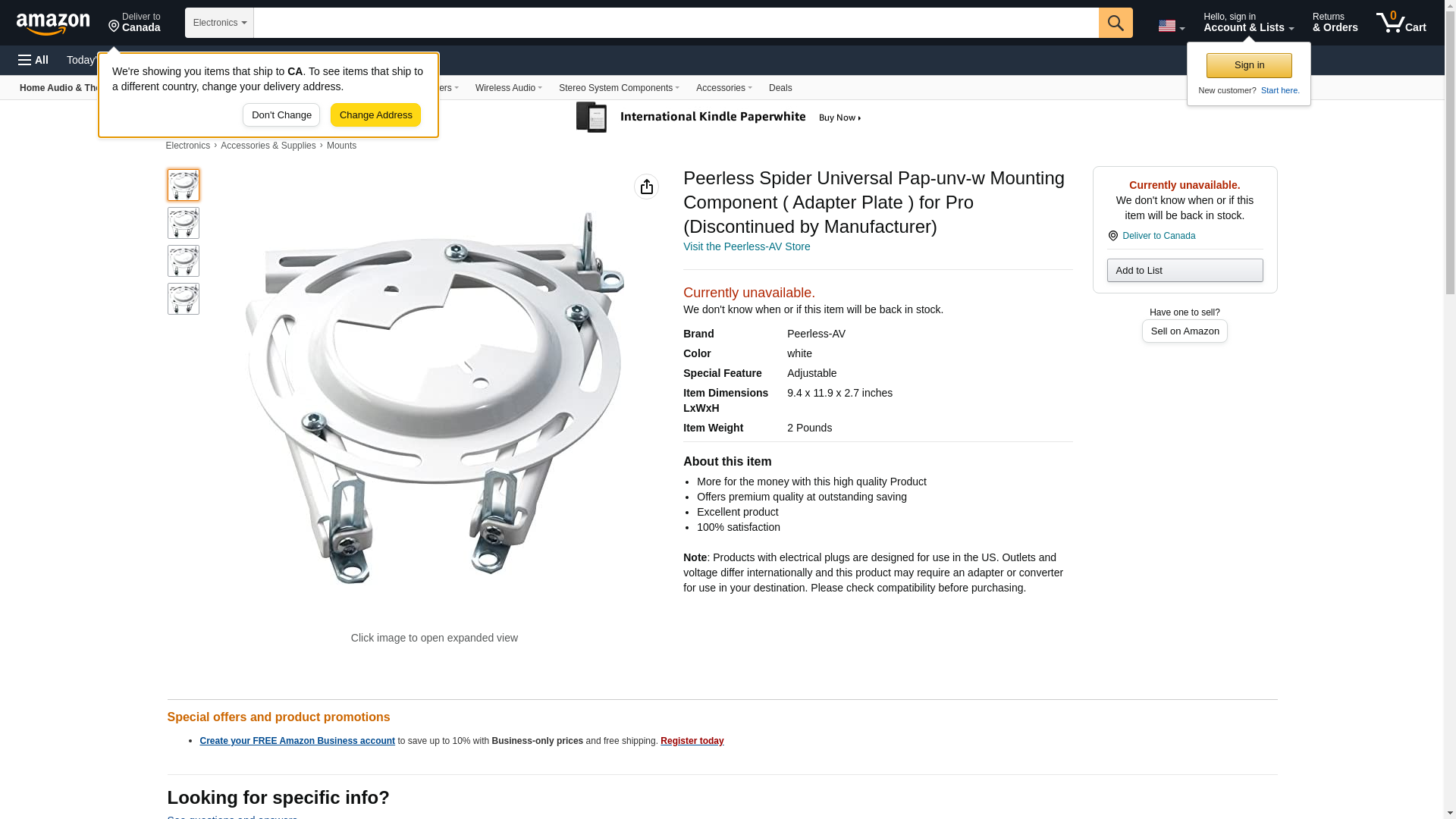 Peerless Spider Universal Pap-unv-w Mounting Component ( Adapter Plate ) for Pro (Discontinued by Manufacturer)