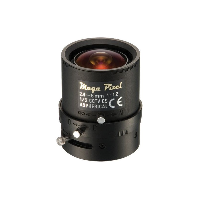 Megapixel; 1/3" Lens Format; 2.4-6mm Focal Length; DC Auto-Iris; CS-Mount; 1 Year Warranty