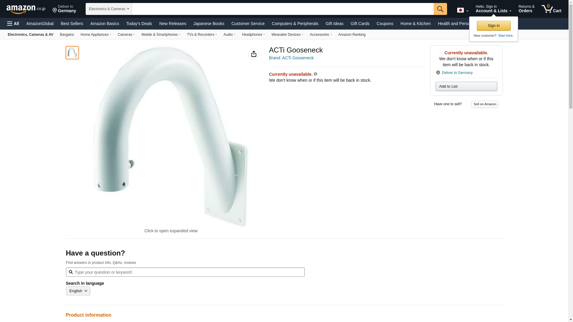 ACTi PMAX-0303 | Indoor/Outdoor Gooseneck Camera Mount, Alum
