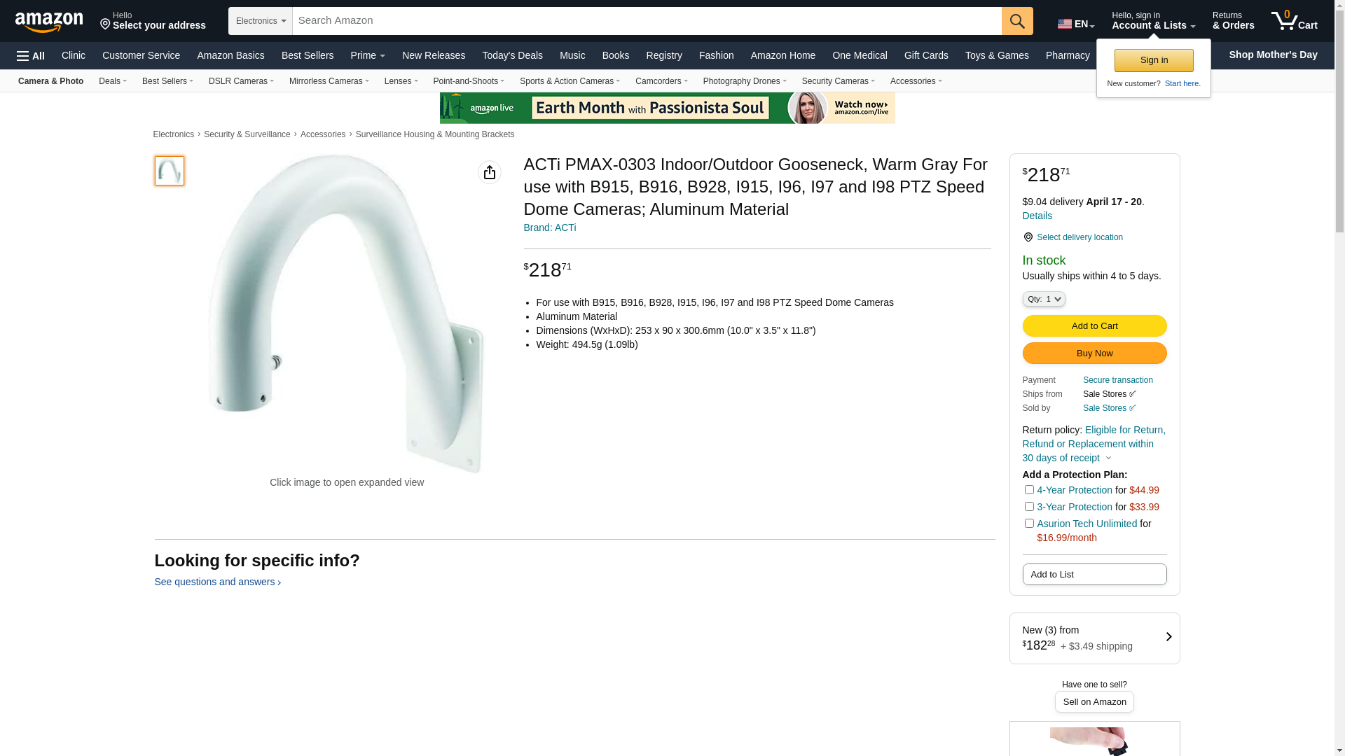 ![]() networkcamerastore.com | ACI-PMAX-0303 | 1 | -2 | 1 | 1 @ $209.13 |