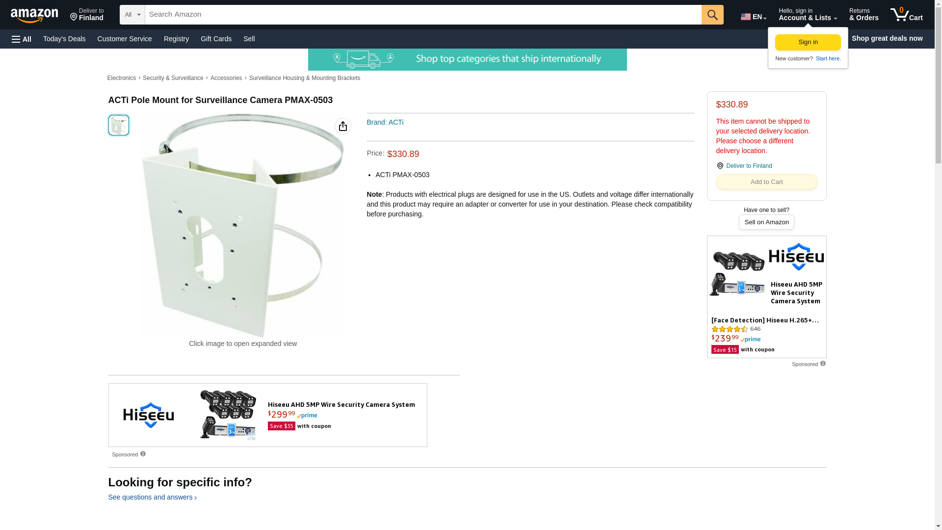 ![]() networkcamerastore.com | ACI-PMAX-0503 | 1 | -2 | 1 | 1 @ $176.85 |