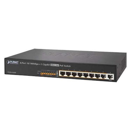 ACTi PPSW-0100 Planet FGSD-910HP 8-Port 802.3at PoE Data Switch (PoE Budget 120W) for use with Cube, Box, Bullet, Dome, PTZ, Covert Cameras, Doord Station and Video Encoder