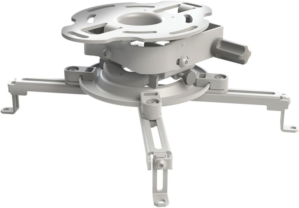 Includes Spider universal adapter plate which extends up to 17.63 in.. Precision gear allows exact pitch and roll. Image positioning with two adjustment knobs. Pre-assembled design. Quick release mechanism to easily service projector. + 15 or - 20 degree tilt. + or - 5 degree roll. 360 degree swivel (yaw). U pitch bracket for easy cable routing. Pre-installed security screws. Weight Capacity: 50 lbs.. Made in USA.