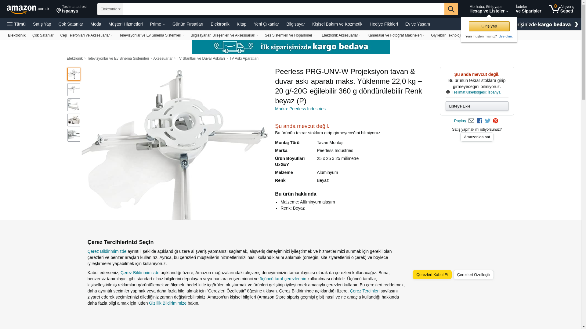 Peerless PRG-UNV-W | Precision Projector Mount with Spider U