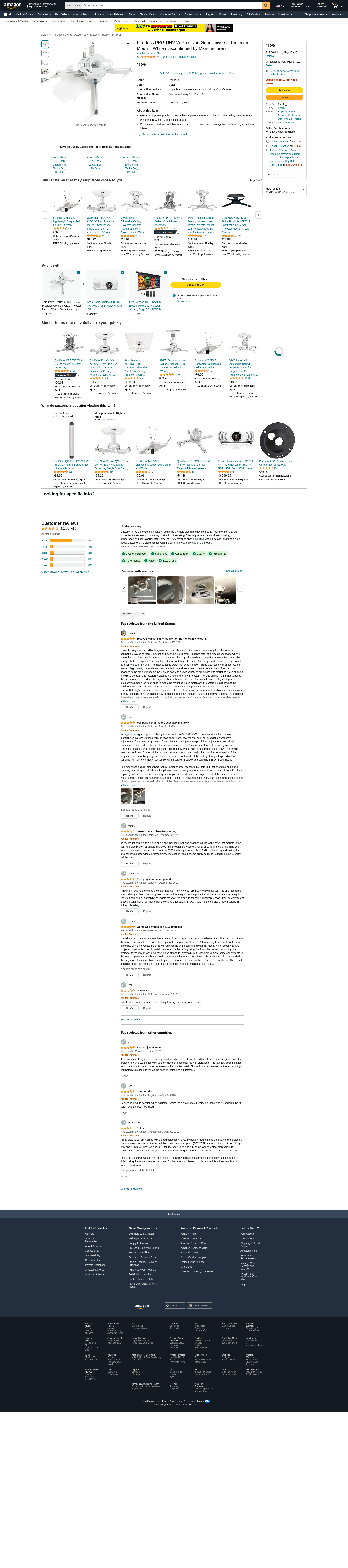Peerless PRG-UNV-W Precision Gear Universal Projector Mount - White (Discontinued by Manufacturer)