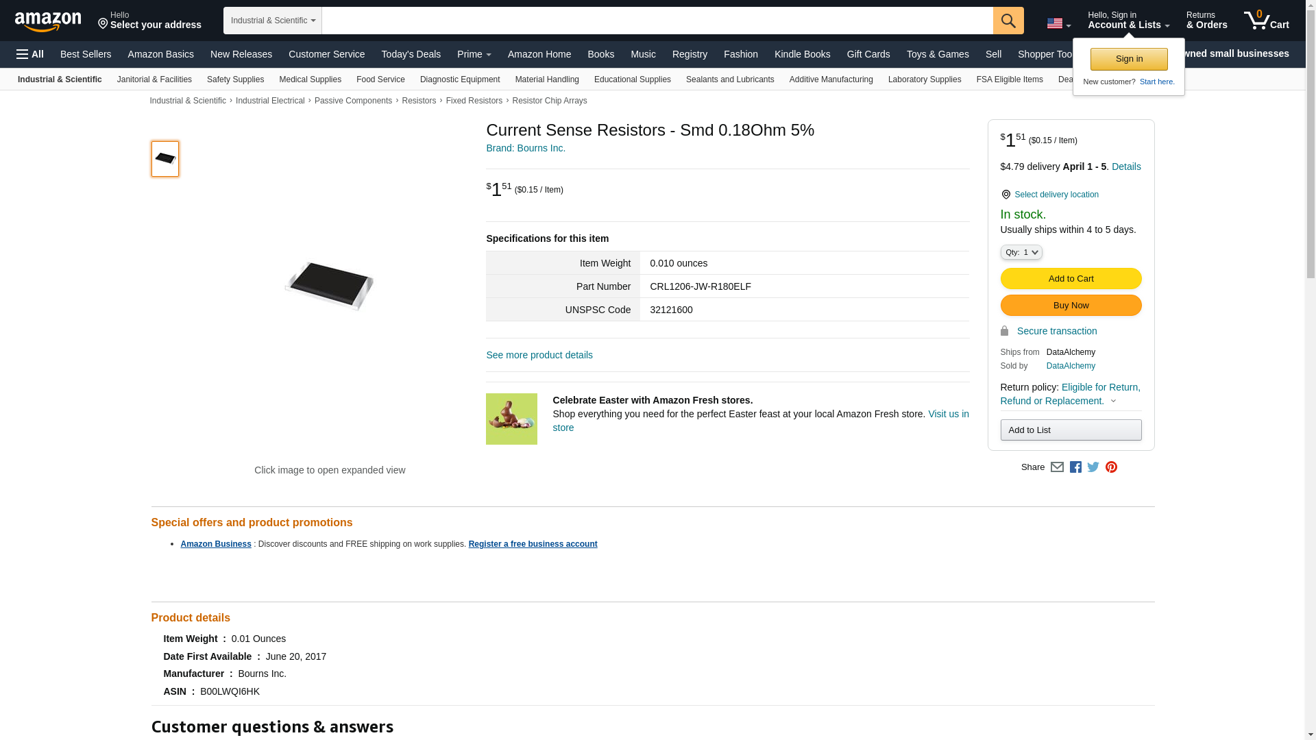 ![]() swatee.com | CRL1206-JW-R180ELF | 1 | 1455 | 1 | 1 @ $0.52 |