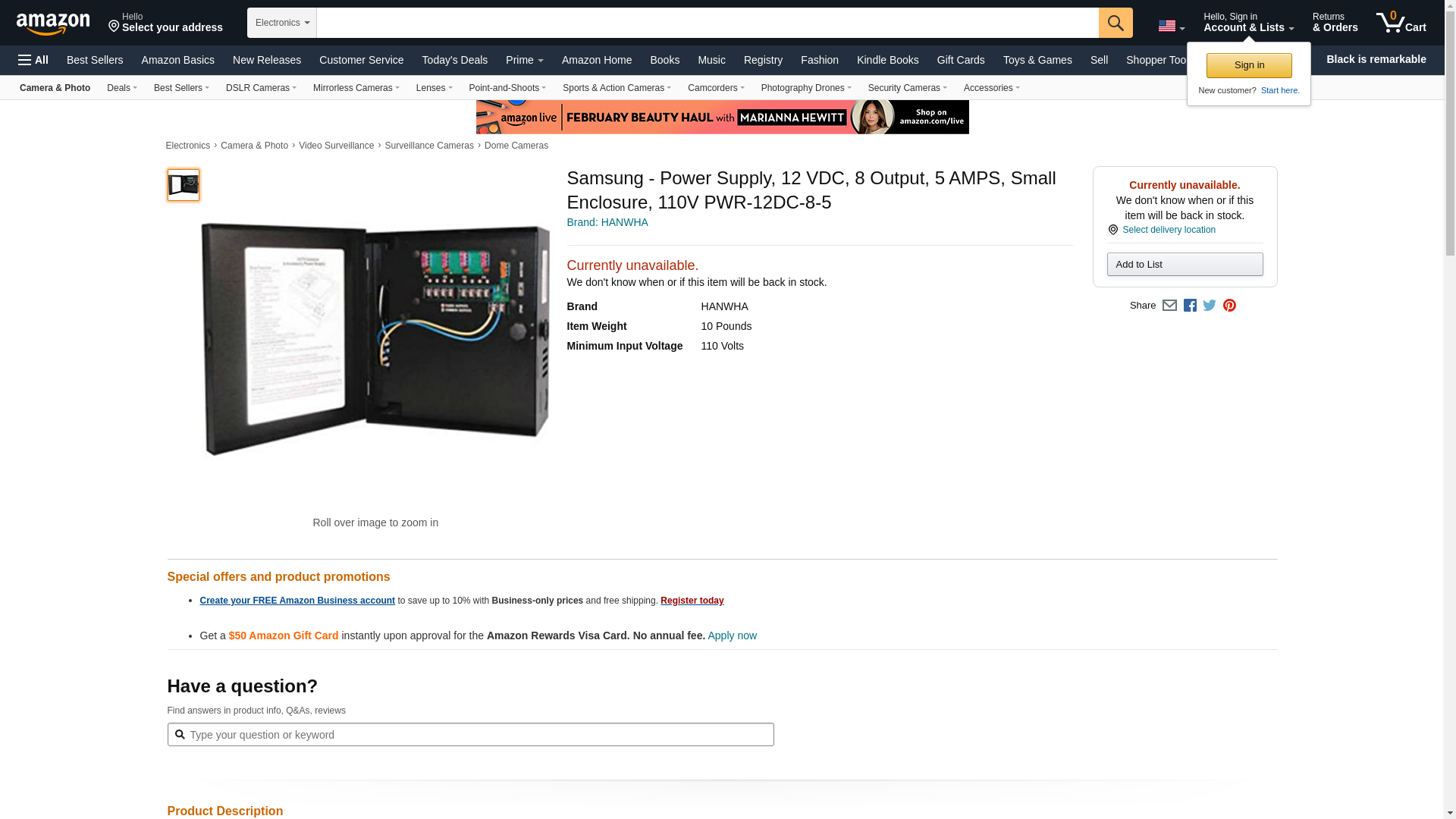 Samsung PWR-12DC-8-5 12 VDC, 8 Output, 5 Amps, Small Enclosu