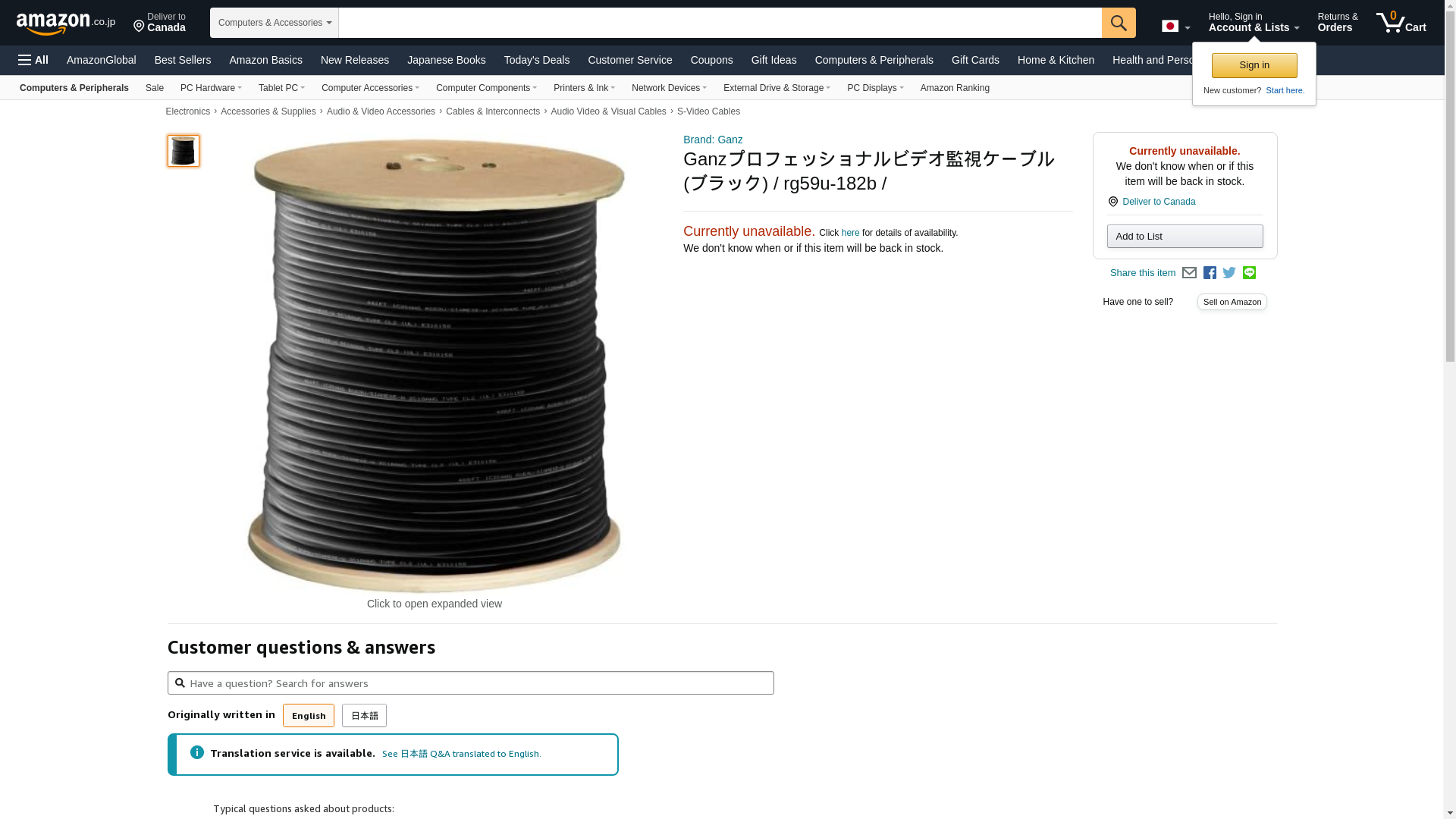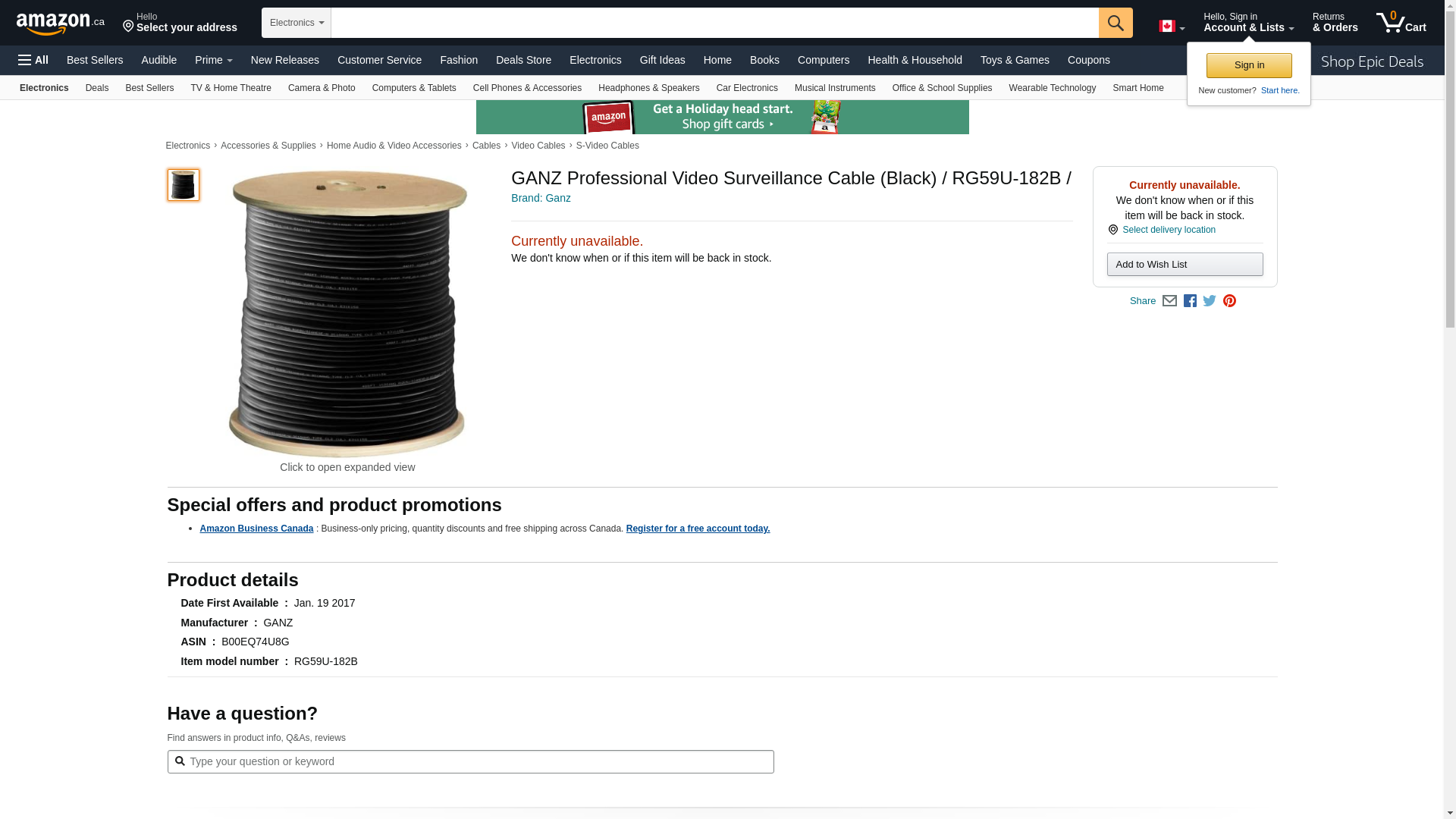 GANZ Professional Video Surveillance Cable (Black) / RG59U-182B /