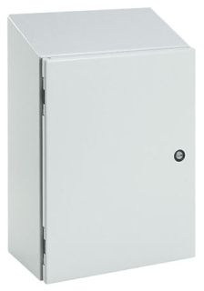 Enclosure has 14- and 16-ga. steel construction, with a 20° sloping top and continuously welded and ground seams. Polyester powder paint coated, inside and out. Ideal for applications that require controls to be mounted at an ergonomic height.<br /><br /> Item - Electrical Enclosure: Sloped Top Enclosure<br /> Enclosure NEMA Rating: 12,13,4<br /> Metallic / Non-Metallic: Metallic<br /> Material of Enclosure: Carbon Steel<br /> Nominal Enclosure Depth: 8"<br /> Nominal Enclosure Height: 20"<br /> Nominal Enclosure Width: 20"<br /> Enclosure Cover Type: Hinged<br /> Solid / Clear Cover: Solid<br /> Closure Method: 1/4 Turn Latch<br /> Knockouts: No<br /> Finish: RAL 7035 Textured Polyester Powder<br /> Color: Light Gray<br /> Depth: 8.00"<br /> Enclosure Cover Features: 1/4 Turn Latch with Screw Driver Slot<br /> Gasket: Seamless Foam-In-Place<br /> Height: 20.00"<br /> Interior Panel: 32FK16<br /> IP Rating: 66<br /> Metal Gauge: 14/16<br /> Mounting: Wall<br /> Series: CW2<br /> Standards: UL Listed, CSA Certified, IEC, cUL<br /> Width: 20.00"