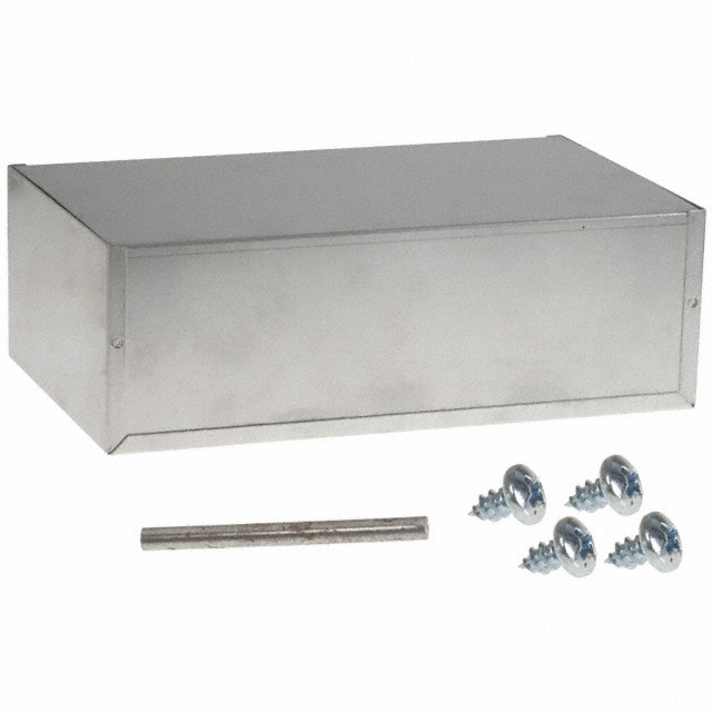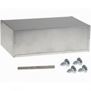 Bud Industries, CU-3011-A, Small Metal Minibox, Natural Finish, 12" x 7" x 4" .040" aluminum alloy. Two sections slip together and may be joined by either built in snap lock or sheet metal screws. Flanged sections assure proper shielding. Units can be used as separate housings or as part of larger assemblies.