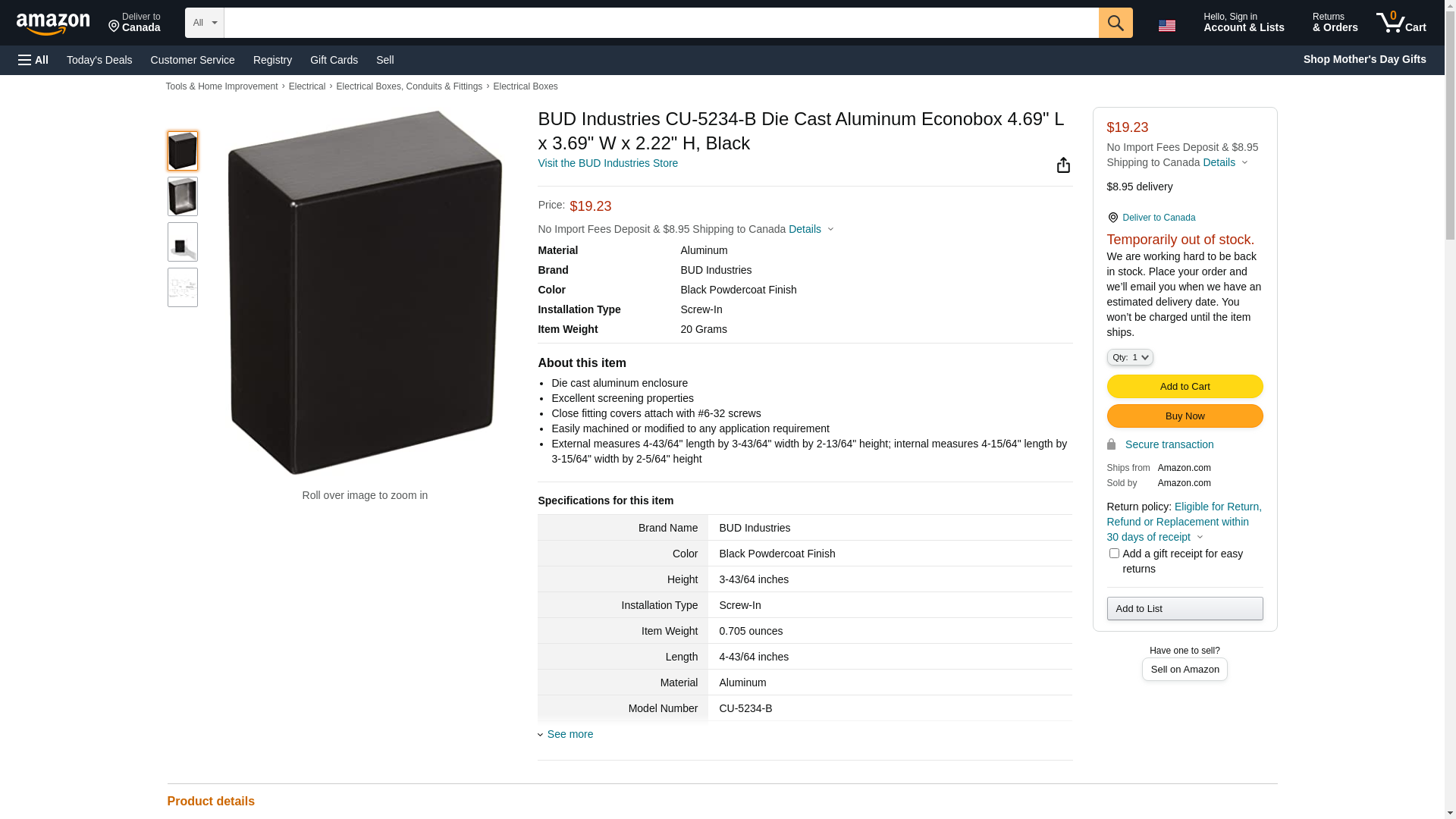![]() Galco | CU-5234-B-BUDI | 1 | 1 | 1 @ $15.00 | |