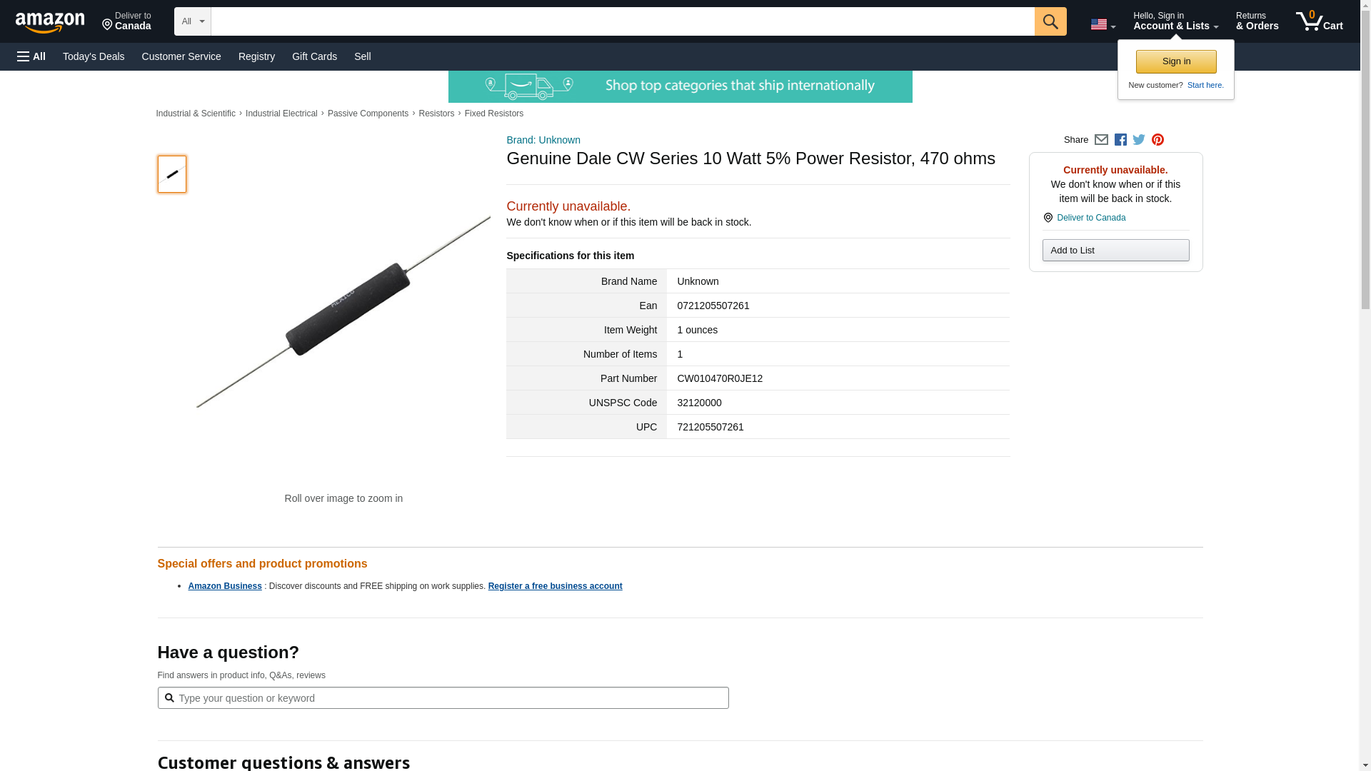 | Feature | <b>Price For:</b> Pack of 5<b>Order Unit:</b> Each\xa01 <b>Power Rating:</b>: 10 <b>Product Range:</b>: CW Series <b>Resistance:</b>: 470 <b>Resistance Tolerance:</b>: \xb1 5% <b>Resistor Case Style:</b>: Axial Leaded <b>Resistor Element Material:</b>: Ceramic <b>Resistor Terminals:</b>: Axial Leaded <b>SVHC:</b>: To Be Advised <b>Temperature Coefficient:</b>: \xb1 30ppm/\xb0C |