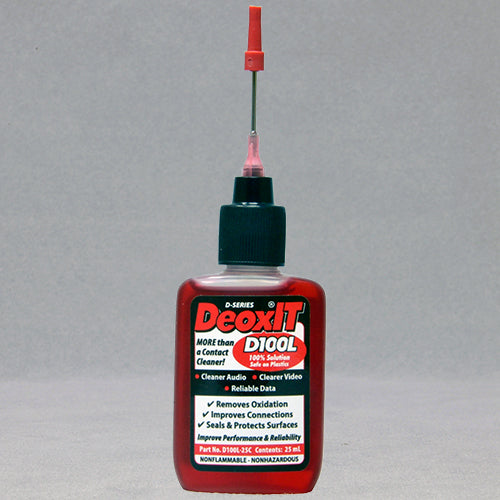 Deoxit D100l D-Series, 25 Milliliter, Electrical Contact Cleaner, Needle Dispenser, 00% Solution, Fast Acting Deoxidizing Solution That Cleans, Protects, Lubricates & Improves Conductivity On All Metal Connectors & Contacts, Use As A General Treatmen