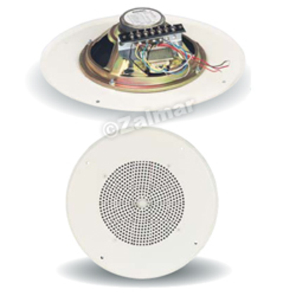 Bogens Ceiling Speaker Assemblies consist of an 8 in. Cone Speaker S86 or S810 pre assembled onto a 13 in. steel ceiling grille painted with off white PG8W or bright white PG8U enamel. Options for these assemblies are recessed volume control VR volume control with knob VK and rear mounted screw terminal strip for power taps BR.Features. 4 watt capacity. 8 in. cone speaker for excellent audio quality. T725 4 watt transformer. Off white enamel over steel grille W versions. Pre assembled for faster installation. Works with both 70V and 25V amplifier outputs. volume control with knob. 10 oz. magnet weights