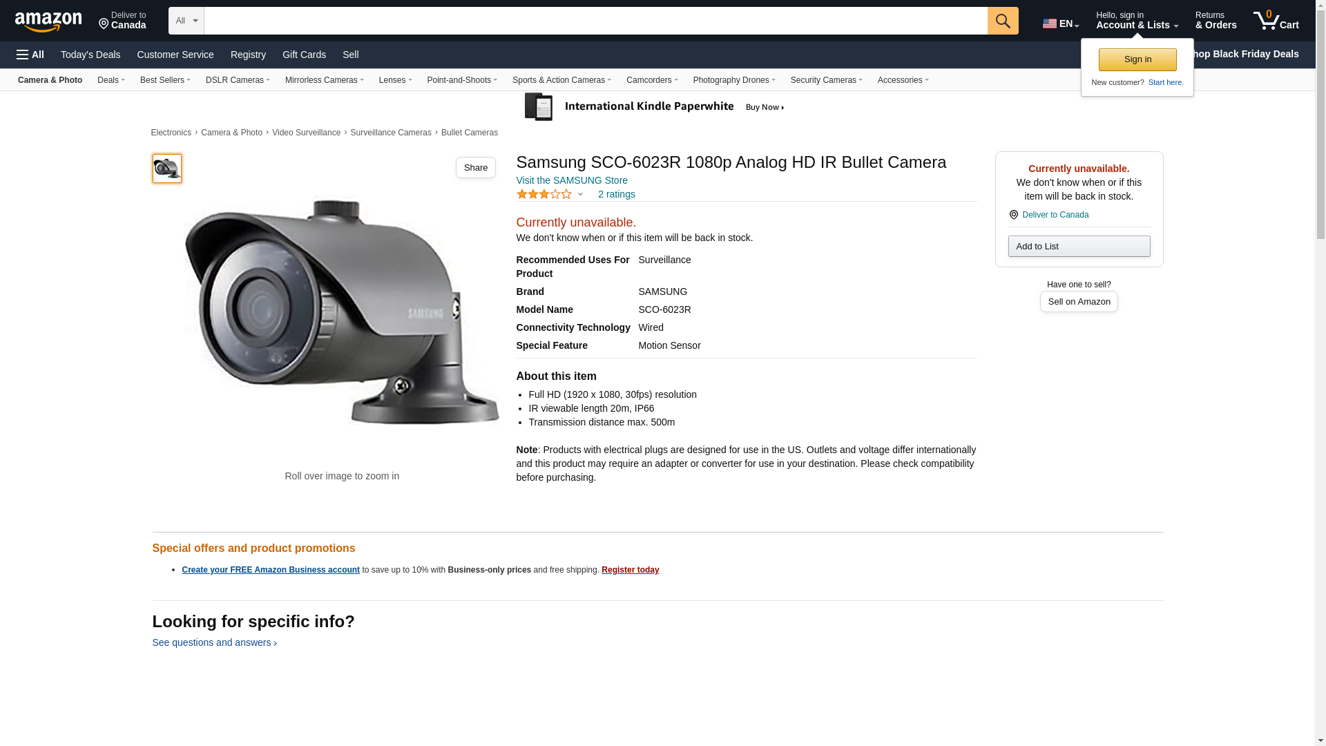 Samsung SCO-6023R 1080p Analog HD IR Bullet Camera