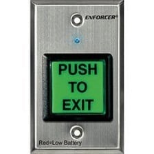 <p><b>Seco-Larm SD-7202GC-PEQ ENFORCER LED Illuminated RTE Single-gang Wall Plate with Large Green Button, Large Illuminated Push Button with Caption "PUSH TO EXIT", Pack of 2</b></p> <b>Key Features</b><ul> <li>Large illuminated push button with caption "PUSH TO EXIT"</li> <li>Message language can be easily switched between English, Spanish, and French with 3 included interchangeable plates</li> <li>Pushbutton rated 10A at 125 to 250VAC</li> <li>Includes five colored 12-inch wire leads with easy-to-attach spade lugs for fast installation</li> <li>LED Gives over 50,000 hours of illumination</li> <li>12 to 24 VDC: No resistors required</li> <li>Includes stainless-steel single-gang plate</li></ul> <b>Specifications</b><ul> <li>Operating Voltage: 12 to 24VDC</li> <li>Current Draw: 10A at 250VAC</li> <li>Operating Temperature: -40° to 167°F (-40° to 75°C)</li> <li>Material: Brushed stainless</li> <li>Dimensions: 4-1/2" x 2-3/4" x 2-3/4" (114 x 70 x 70 mm)</li> <li>Weight: 3.7-oz (105g)</li></ul>