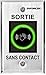 Seco-Larm SD-927PKC-NFQ IR No-Touch Request-To-Exit Sensor with French message. Green illuminated ring turns red and 3A relay is triggered when hand is passed in front of the plate. "SORTIE SANS CONTACT" printed on plate.