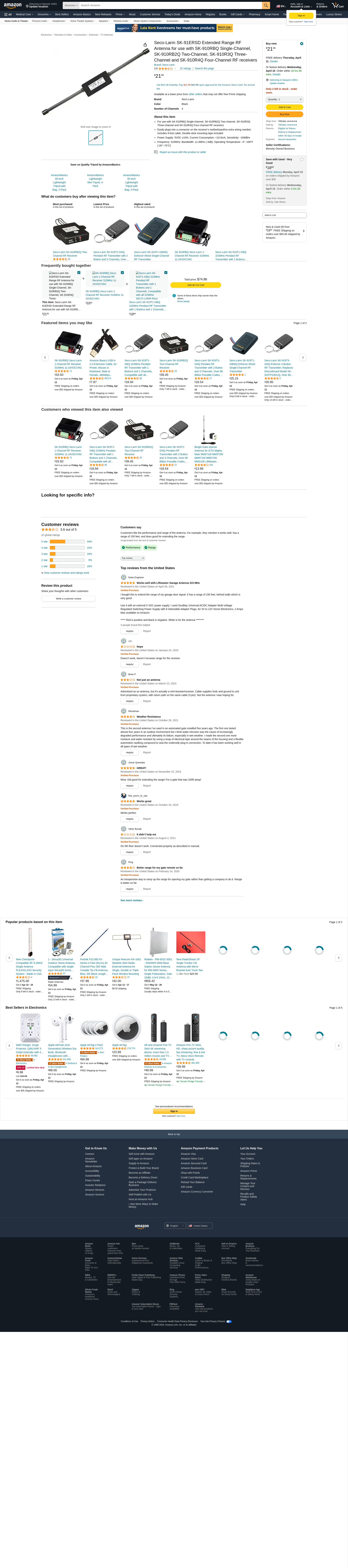 EXTENDED RANGE ANTENNA DIPOLE TYPE FOR UP TO 1 000 FT RANGE PLUGS INTO SK 910R SK 910RA SK 910R2 SK 910R4 FLEXIBLE ANTE