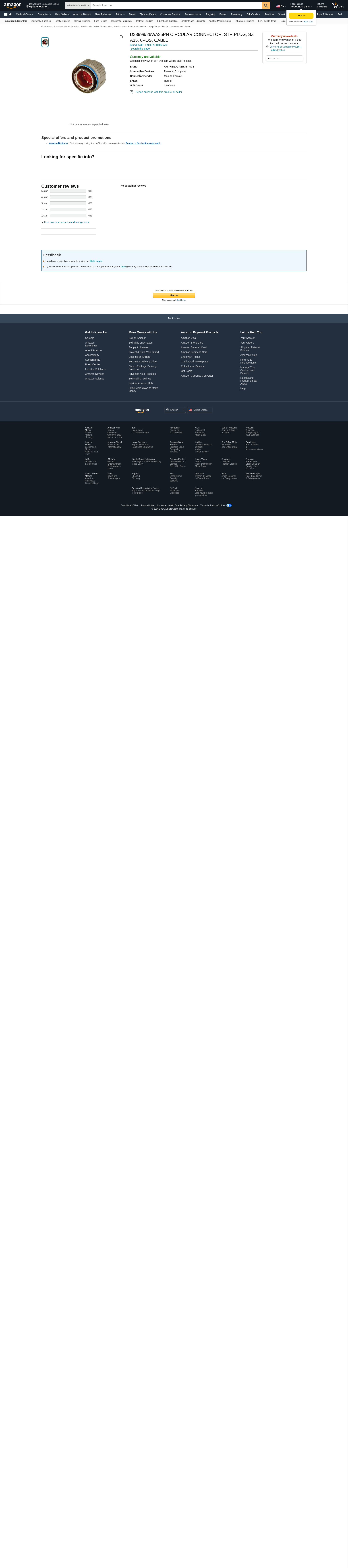 AMPHENOL AEROSPACE - D38999/26WA35PN - CIRCULAR CONNECTOR; STR PLUG; SZ A35; 6POS; CABLE