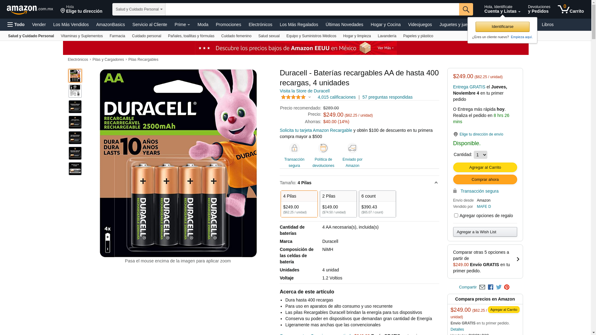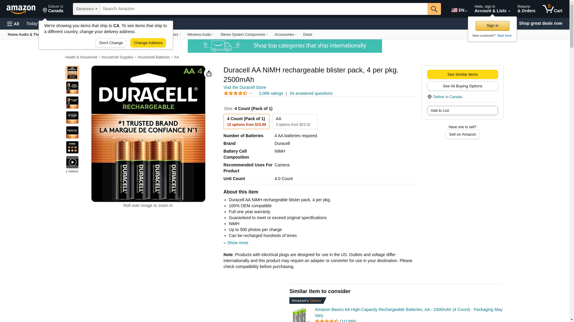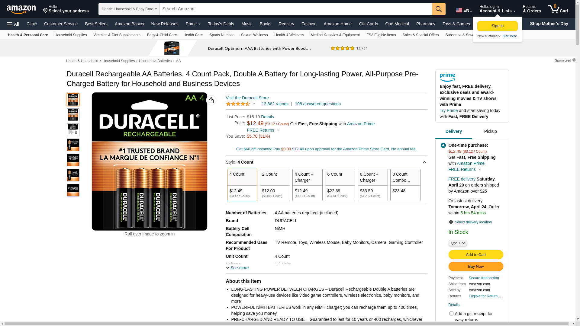 - Duracell AA NiMH rechargeable blister pack, 4 per pkg.