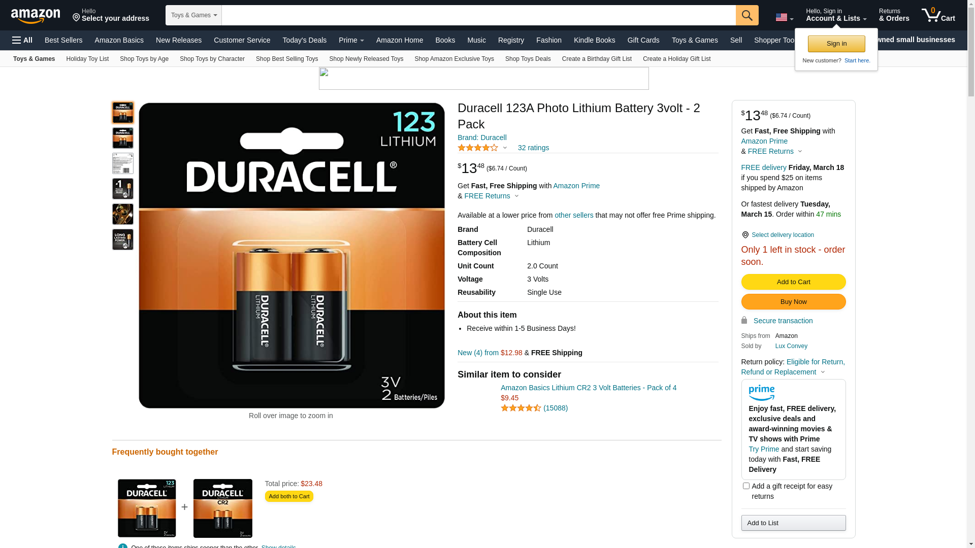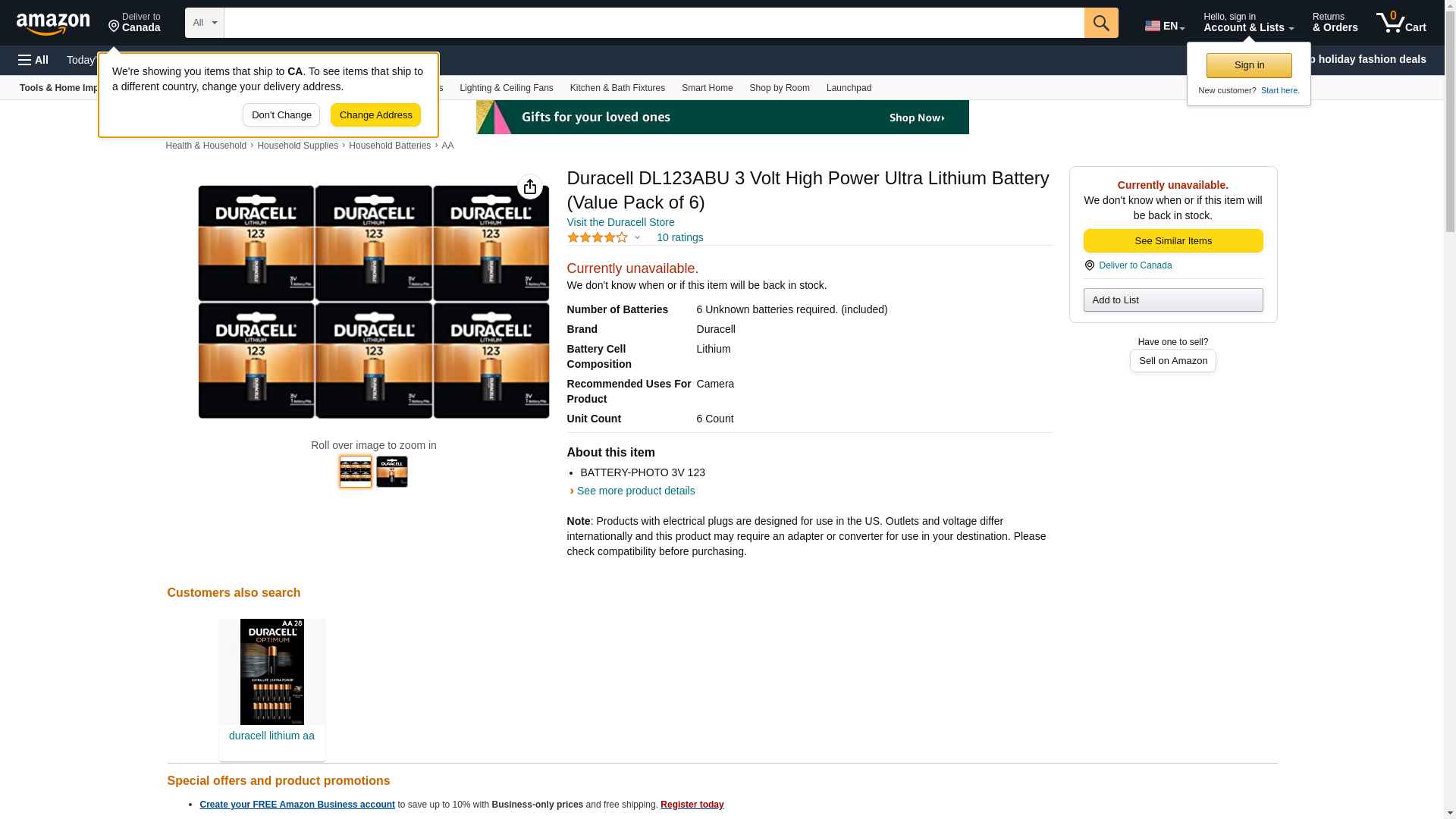 | BatteryJunction.com | DURACELL-DL123ABPK | 1 | 1 | 1 @ $5.65 | |