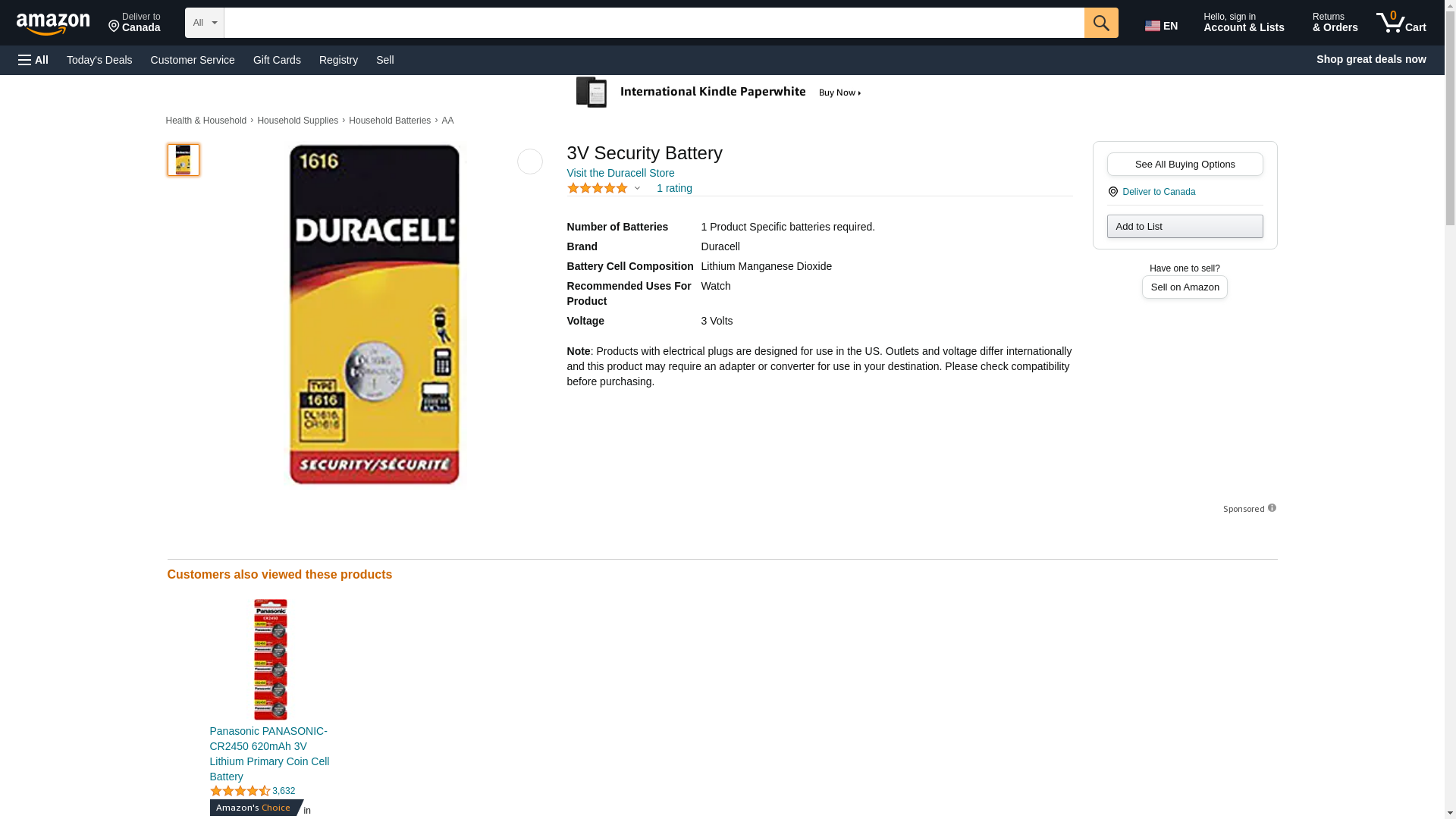 | Feature | "Lithium Coin Battery: Duracell's 1616 3V coin batteries provide reliable, long lasting power for your medical devices, watches, toys, fitness devices, security devices, electronics and more" |