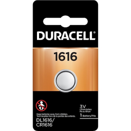 DURACELL DL1616BPK BATTERY, LITHIUM MANGANESE DIOXIDE, 3.1V, CR1616 (1 piece)