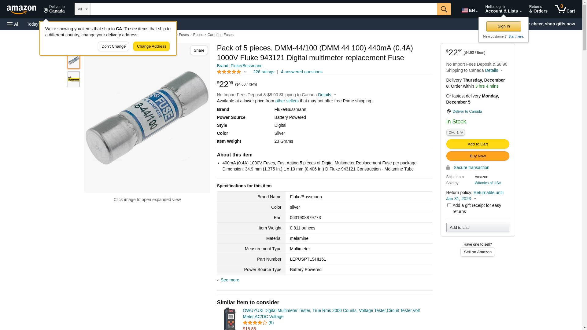 | Feature | Pack of 5 pieces, DMM-44/100 (DMM 44 100) 440mA (0.4A) 1000V Fluke 943121 Digital multimeter replacement Fuse |