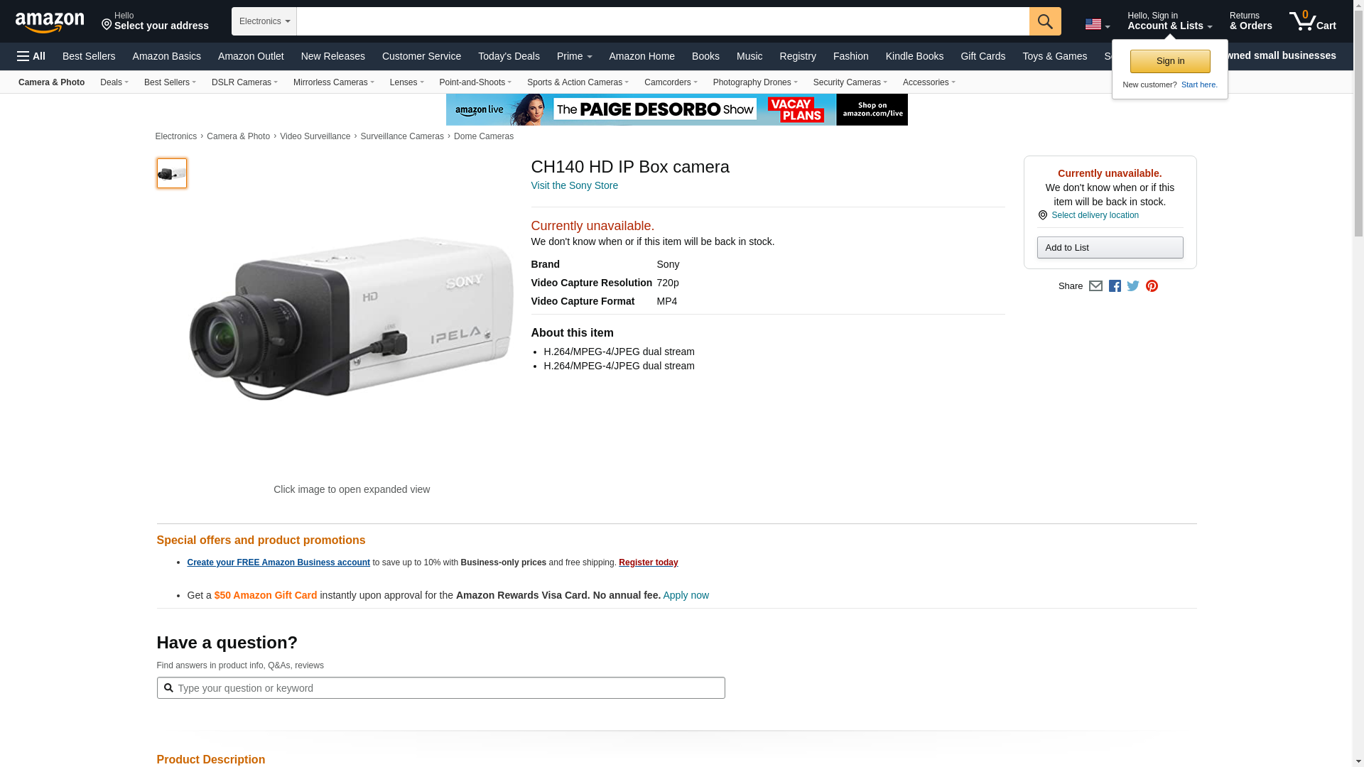 | absupply.net | SONY ELECTRONICS INC CMP. SNC-CH140 | 1 | 1 | 1 @ $1979.02 | |